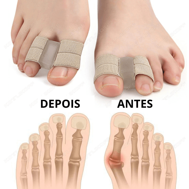 O uso contínuo ajuda a realinhar o dedo, corrigindo a deformidade do joanete visivelmente.