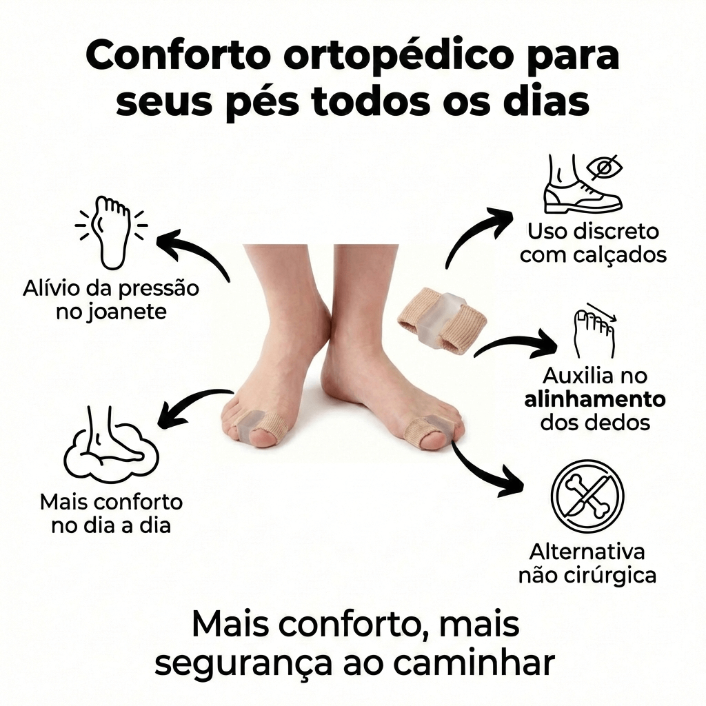 Conforto imediato, uso discreto. Correção visível do joanete e mais segurança para caminhar todos os dias, ele não disfarça, transforma!